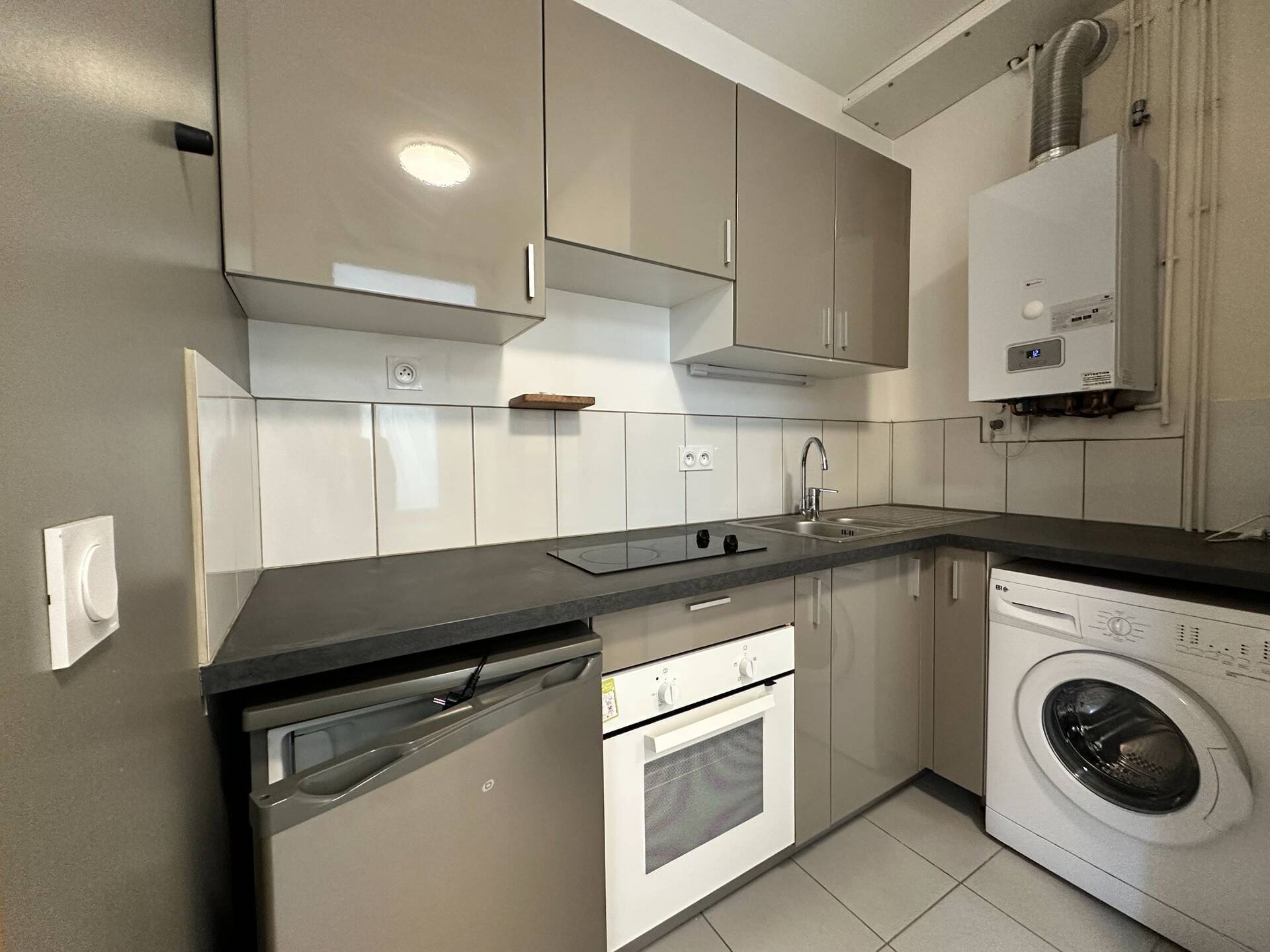 Entre le secteur de l'Aigle et la caserne de Bonne, dans une copropriété bien tenue et sécurisée, beau 2P+C au 5° étage avec ascenseur, comprenant un hall, une kitchenette équipée et aménagée ouverte sur le séjour, une chambre, une salle de bains avec baignoire. Le logement est partiellement meublé. Un place de parking privative est également louée en sous-sol. L'eau froide est collective. Le chauffage est l'eau chaude sont individuels électriques.