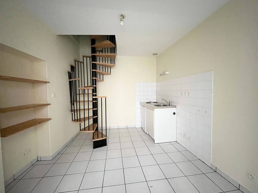 Cet appartement de type 1 pièce en duplex, d'une surface de 23.12 m², est situé au rez de chaussée, dans une arrière cours. Il est composé d'une pièce de vie principale et d'une kitchenette, et d'une chambre et salle d'eau avec wc à l'étage.