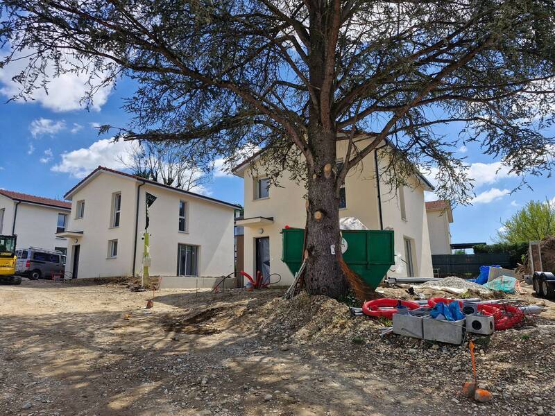 BOURGOIN secteur MOZAS, résidence neuve, belles prestations et finitions, maison de 105.77m² avec garage, terrain 184m² avec terrasse. Au rez-de-chaussée : entrée avec placard, espace de vie avec cuisine ouverte, une chambre avec placard, salle d'eau, et toilette. A l'étage : 3 chambres avec placards, salle de bains et toilette. Chauffage pompe à chaleur / climatisation réversible, volets roulants électrique, prise pour voiture électrique, ...